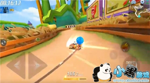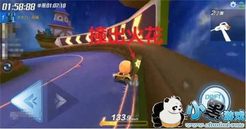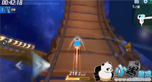 在穿过彩虹门的时候,记得一定要积攒好氮气,这样,在回转木梯这一板块就可以一路畅通无阻的冲刺,把别人远远的甩在身后。