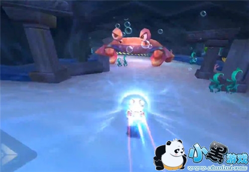 进入隧道后,看到大闸蟹,不要慌,看清向左拐弯的标志。如果没有经验就飘到闸蟹身下的中心,就能看到螃蟹小腿之间的通道,免得撞到螃蟹腿上。
