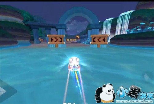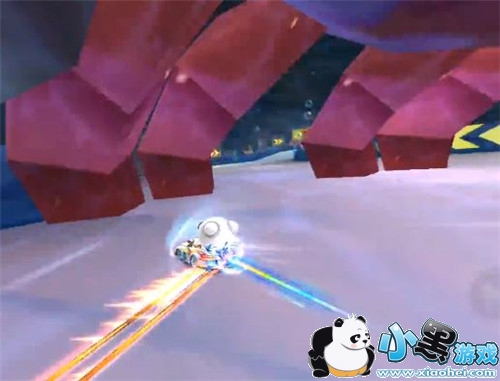再来就是一大段一大段的地形直道冲刺。第一段魔法通道,保证进入时的车头笔直冲进去后不要随便调整方向。出来后,是一大滩水面,难度也不高。注意事前集齐氮气,不够时在速度足够的情况下拖漂一段,集气就好。