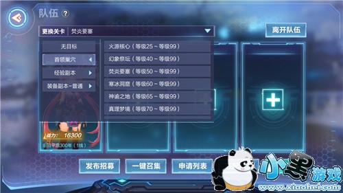 进入的方法则是达到对应的等级在左边任务列表中选择组队,进入组队大厅中能够找到首领巢穴,分别是火源核心,幻象祭坛,焚炎要塞,寒冰洞窟,神谕之地,真理梦境,深谷墓地,罪恶空间。就让我们去看看这跨时代第四个副本寒冰洞窟把。