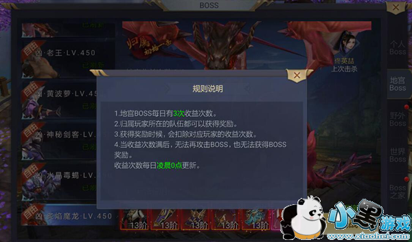 1. 地宫boss每日有3次收益次数。