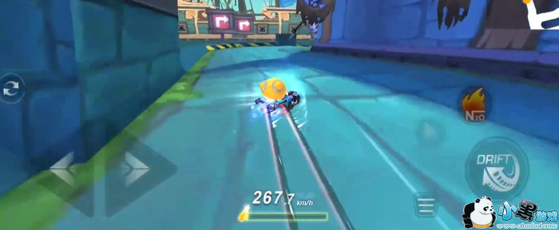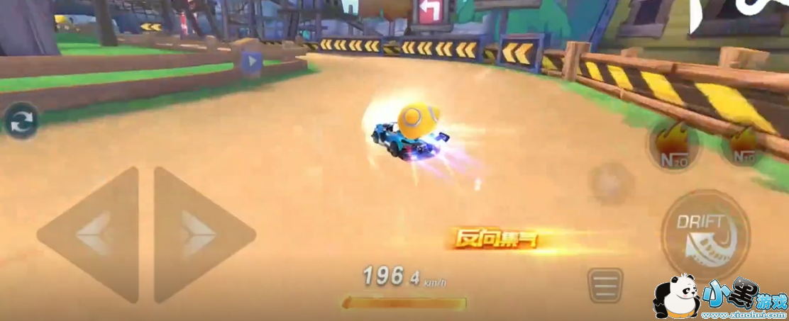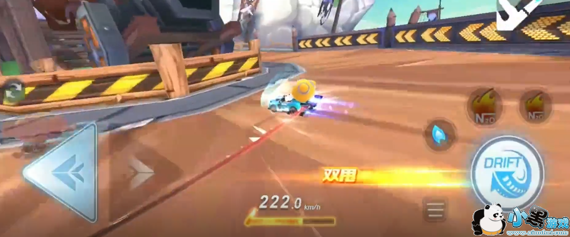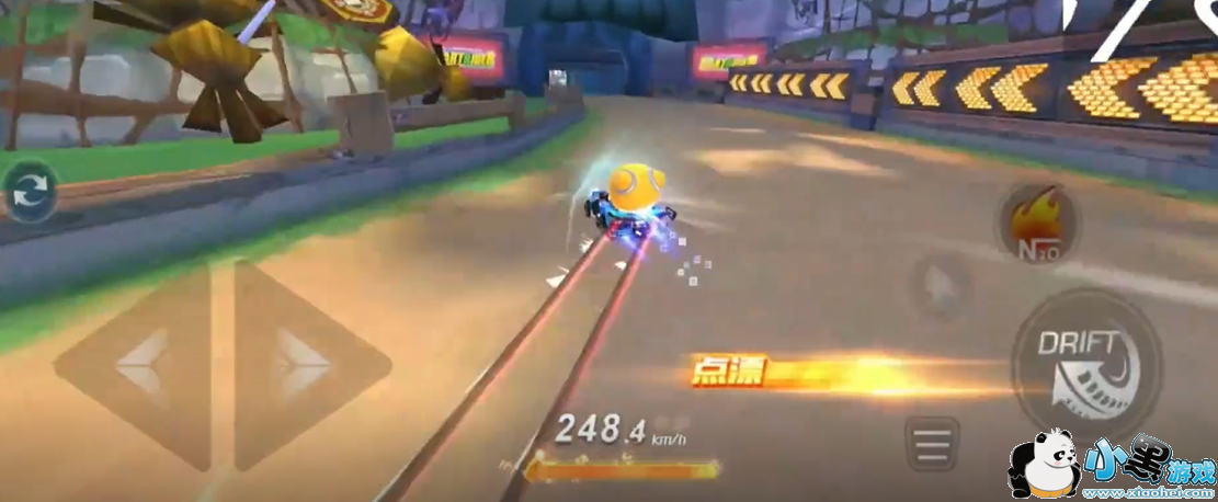 这里可以发现下方的集气槽即将变满,如果在这个弯还用拖漂就不能将氮气最大化,所以我们可以选择点漂,然后触发点拖来进行快速集两个氮气。这样在后面的直线就可以加速通过了。