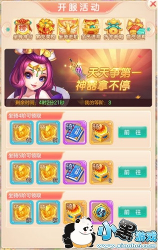 最后,不要忘了开服活动,每天都有排行榜活动,每日活动的系统达到对应的等级,便可领取进阶礼包和进阶奖励,在活动结束时如果再榜单前列的话还有非常丰厚的排名奖励。除此之外在还有对应的折扣商城,在有余钱的情况下,小黑游戏小编建议大家参与这个活动,消耗元宝升阶系统,竞争排名。