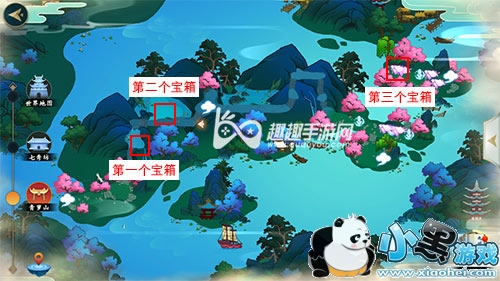 首先是地图上比较常见的三个宝箱位置,如下图所示。