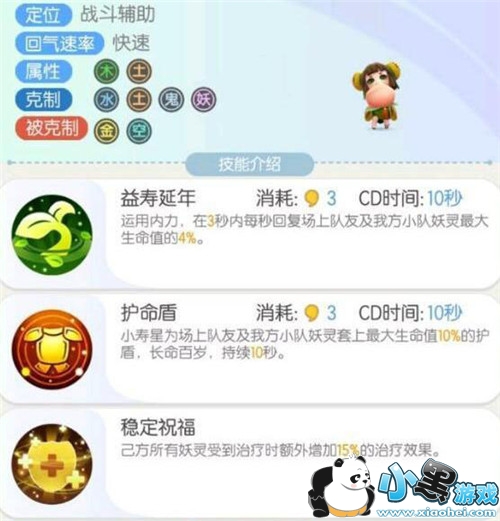 以上就是一起来捉妖手游小寿星的技能介绍及使用技巧。目前版本中小寿星是一名比较不错的强力辅助,如果资源足够的情况下最好还是培养一只比较好。如果你还想了解更多手游资讯,请持续关注小黑游戏。
