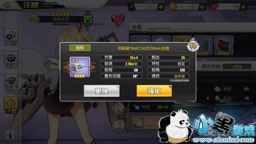 双联装TbtskC36式150mm主炮(T3)是目前第一的轻巡主炮,有着出色的伤害能力和射速,搭配克利夫兰的高炮击,输出伤害简直爆炸。