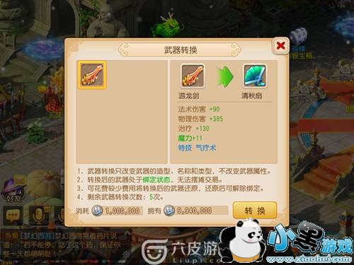 ④每次转换角色成功后,有5次转换武器的机会。转换后的武器将处于绑定状态,可以作为任务物品上交,可以分解,但不能摆摊交易。