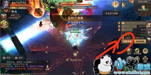 2、然后到外面点击战盟求助请求增援,战盟里朋友可以在协助界面看到你的求救消息,他们就可以点击协助进入世界BOSS帮你打伤害和击杀对手。