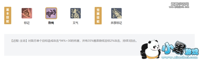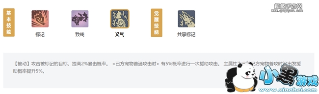 技能分析:非常实用的技能,2%的生命上限伤害加成为更高的输出带来了无限可能,驯兽师在培养的时候可以考虑生命方面的培养。另外标记是一个长远意义的debuff,暴击增加的伤害可不是一点半点。