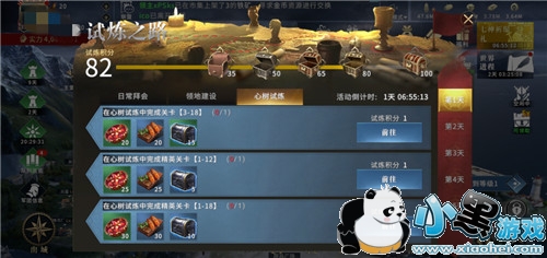 以上就是权力的游戏凛冬将至手游中,试炼之路第一天完成的技巧详情了,其中,主堡升到17级与完成精英关卡1-18是比较难得,一个容易缺时间与资源,一个战力不足不能通关。更多游戏攻略,请关注小黑游戏。