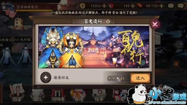 这款游戏主要以式神为主,又是一个需要耐心的游戏,所以一定要选择一个你喜欢、好用又有用的式神呀!游戏中式神分SSR,SR,R,N四种,而其中的ssr和sr,如果不投入rmb,想要养好是一件不容易的事情呀。所以选择到好用的r或sr式神开局,也是很不错的哟。开局就送每个号都有的雪女和三尾狐狸就是不错的选择,雪女是SR式神、三尾狐女则是R式神,两个都可以用很久,记得提升技能哟。3号位可以选择莹草这样的加血式神,觉醒后配上合适的御神。总之前期练好3个式神,4、5选好,就好好的着手弄装备吧。