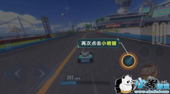 第三步:当车头摆正之后,就松开【漂移键】和【反方向键】,点击一下【小喷键】。