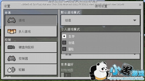 玩家也能按下返回键,在设置—游戏设置,修改个人游戏模式来生存,创造,冒险模式切换。