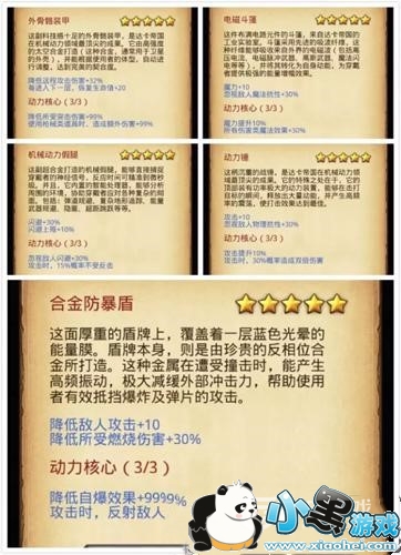 五件机械装备:特定楼层输入特殊指令,就会给装备1共5件,盾牌是最好的,防御衣次之:70层由于零件是有限的,其他的可以并不用升级。