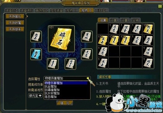 1.主天书放置后,就需要玩家选择需要强化的属性