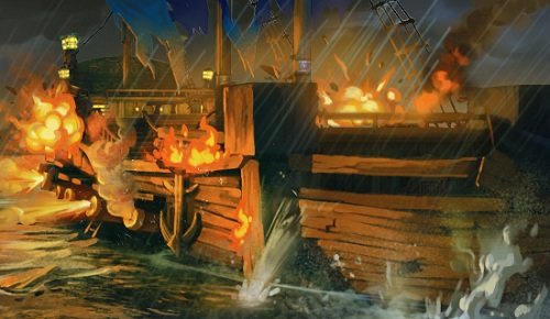 在《加勒比海盗:黑珍珠号的诅咒》电影中,杰克船长第一次亮相就是在皇家港码头偷走了一艘军舰。皇家港是17世纪后半叶位于中美洲金斯敦港附近的一座城市,也是当时加勒比海地区的航运中心。在那时,皇家港是掠夺者和海盗青睐的避难所,被誉为“世界上最富有和最邪恶的城市”。游戏中,白天的皇家港码头风景如画,椰林树影与碧海蓝天相映成趣;海盗与海军鏖战过后,夜晚的皇家港码头燃起熊熊大火,海盗的命运将何去何从?