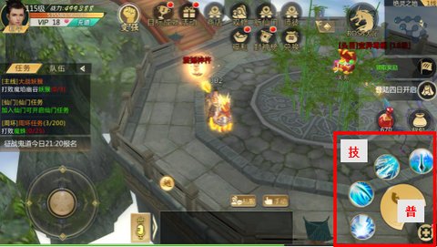 在屏幕右下、右上都有隐藏菜单。在此处可以调出技能、仙翼、修真等功能,请大侠擅于利用,开启一场热血仙侠之旅!