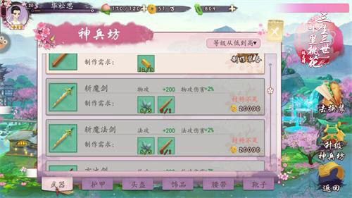 在《三生三世十里桃花-桃花醉》手游中,装备不仅可以改变角色的形象,还是一个提升战斗力的利器。通过消耗材料来制造所需要的装备,此外修行神兵坊可以获得更高级装备的配方哦,祝你战斗力爆棚。