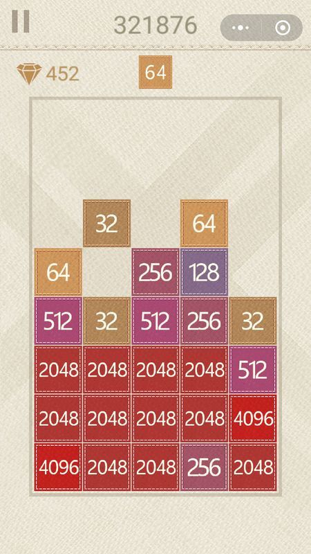 因为这个游戏是块落下之后,合并结果是可以确定的,所以高级玩家应该会有利用横排合并的组合式的合并方式,就是落下一块,直接连续消除一大片,然后合成一个超大数。