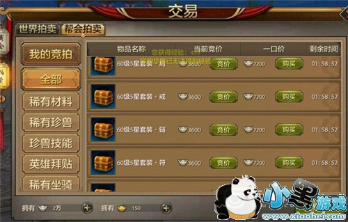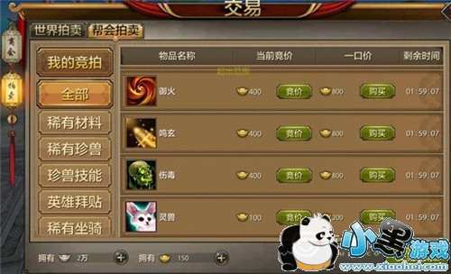 玩家在所有帮会拍卖中的道具,帮会都能够参加竞拍,流拍物品就会流入到世界拍卖,会被系统以原价回收。