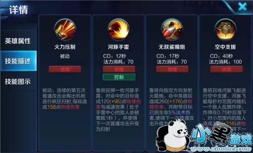 火力压制:被动技能,在连续进行五次普攻后会进行疯狂扫射,造成伤害,这个技能无论是推塔还是打团时能提高自身的攻击速度,并且提高伤害。