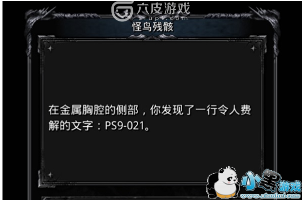 玩家在击败怪鸟之后,当不选择跟罗拉娜返回庇护所,而是选择在四处的逛逛的时候,能够发现怪鸟残害的彩蛋,可以记住代码PS9-021,当遇到了凹坑中的房子的时候,就可以输出正确的密码了,而且这些答案就是非常简单易记的。