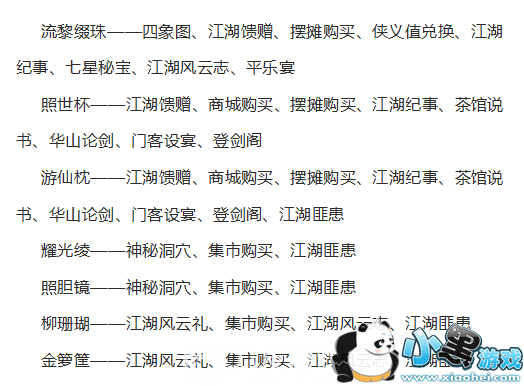 3、金色装备可以通过生活技能装备打造来获得,人品好的时候还有可能会出极品或者橙紫装。华山的装备打造的材料一般在作坊也可以合成,所需材料为流黎缀珠*14+指定金色材料*5,其中所需要合成的材料以及其怎么得到方式如下图所示。