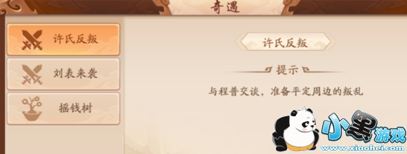 1、许氏反叛:先跟程普对话,再跟许贡打,打赢后跟鲁肃对话,就完成了;