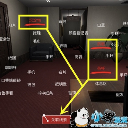 茶里下药这个线索需要将茶杯、沉淀物、药瓶、崔宁这4个线索关联起来,才可以获得。