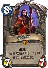 | 卡牌效果: | 战吼:装备埃提耶什,守护者的传说之杖。 |
