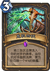 | 将三张伏击牌洗入你的对手的牌库。当你的对手抽到该牌,便为你召唤一个4/4的蛛魔。 | |