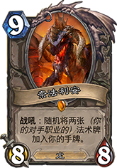 | 卡牌效果: | 战吼:随机将两张(你的对手职业的)法术牌加入你的手牌。 |