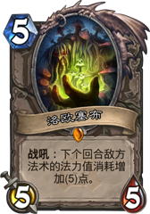 | 卡牌效果: | 战吼:下个回合敌方法术的法力值消耗增加(5)点。 |