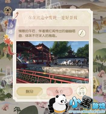 3、游历结束后,游戏会提示你获得的奇景,点击【保存】即可保存奇景图片了。