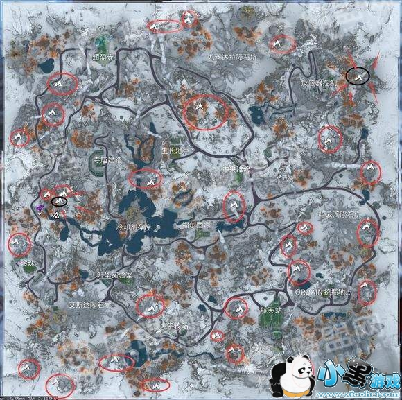 下图中圈圈的地方就是矿洞了,目前一共有30个矿点。
