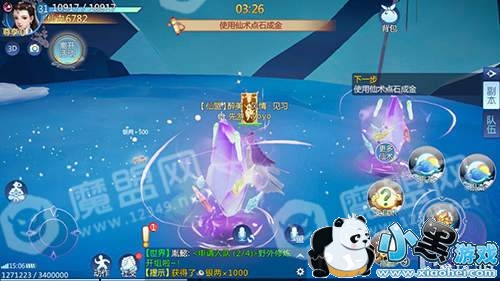 果然是个好地方,看那一块块精美的水晶,悬在空中美仑美奂,可不要看入迷了哟,这个副本可是有时间限定的,必须要在时间范围内对所有的水晶使用仙术点石成金,哇,平时在野外要寻寻觅觅才能发现一块的“石头“,在这里随处可见,这下真的是发达了。
