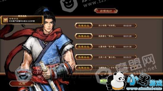 附一个初见评价图,这个评价可以解锁成绩“洛雁谷主”,还有更高的评价是“武林盟主”(目前已知能达到的时限是每个BOSS都在2分钟之内)。