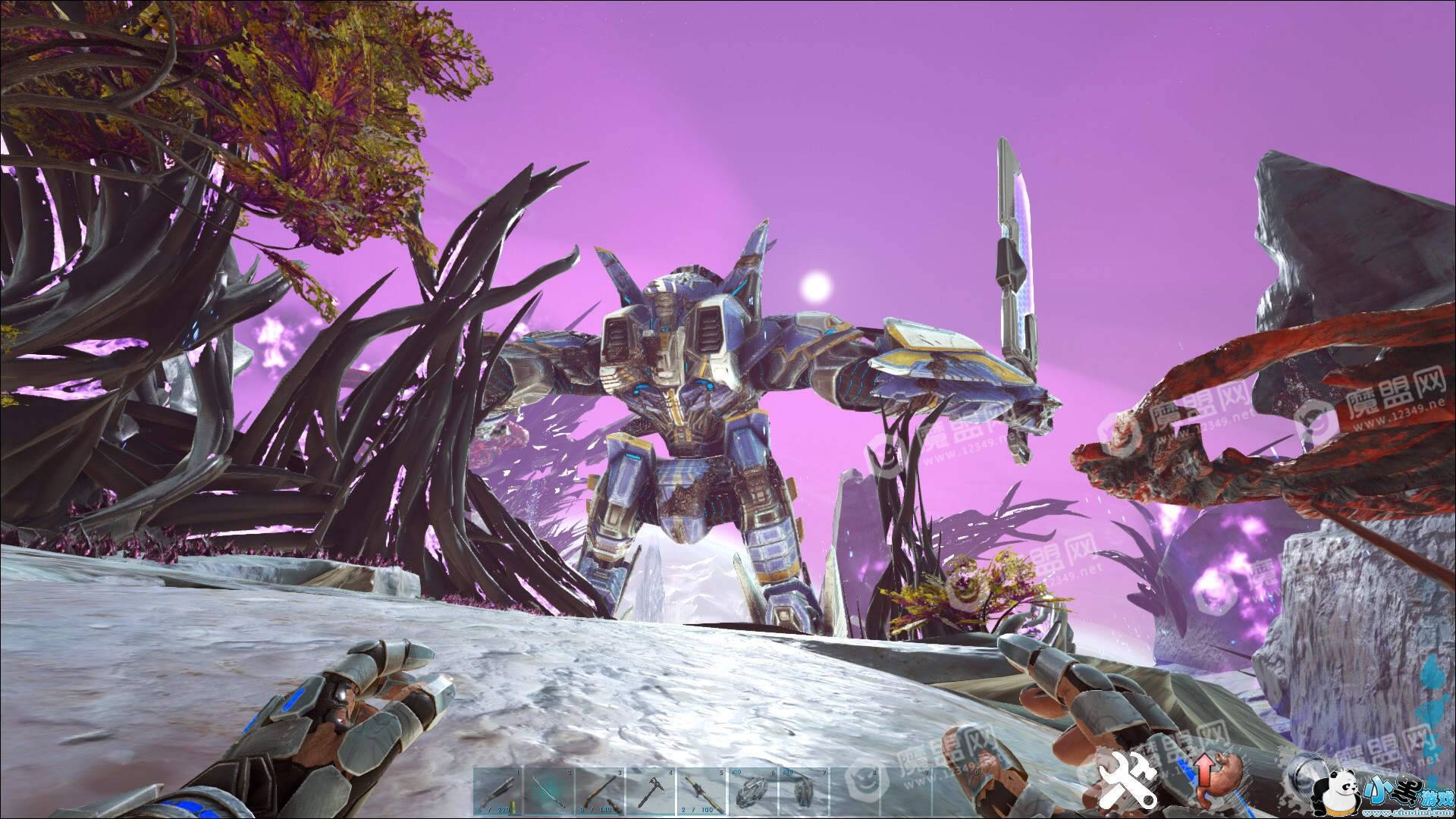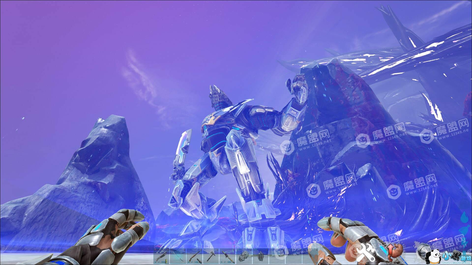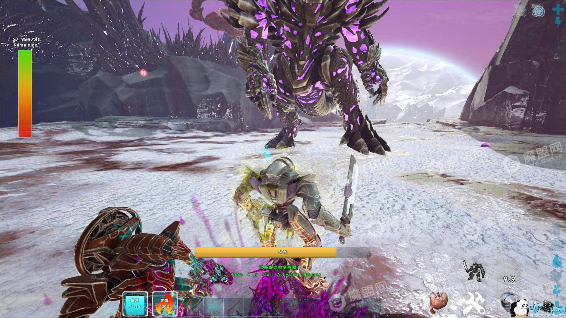 召唤后骑上装有转换器的机甲,然后按C键,进度条满后继续按C键,就可以召唤超级机甲。超级机甲只能按鼠标左键进行攻击,用拳头或者光刀。和小机甲不一样的就是取消了飞行功能和远程攻击功能。