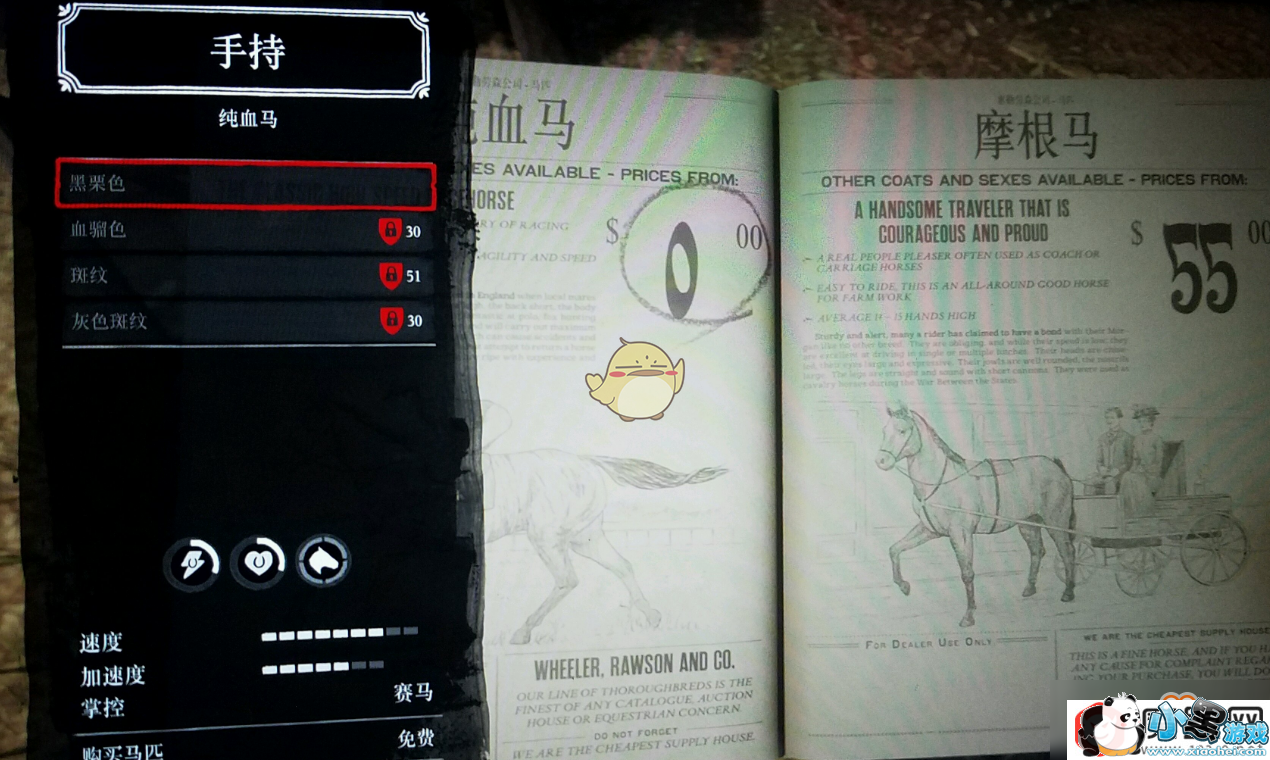 进入自由模式长按左键进目录,免费就是领的,三套衣服,几把枪和一匹马,但是没金条上保险马连门都出不去