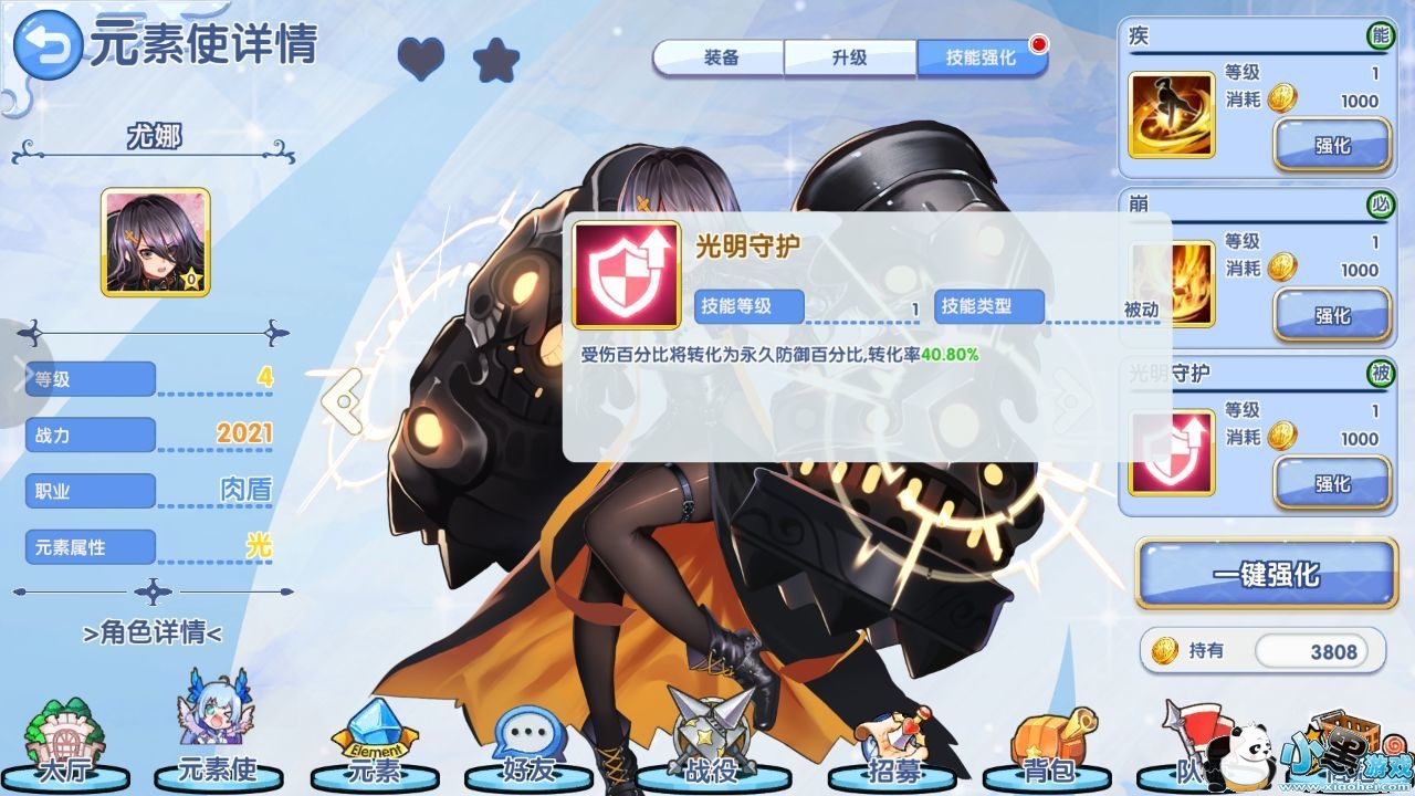 配合尤娜这种技能回血、大招加格挡、被动加防御的精灵使