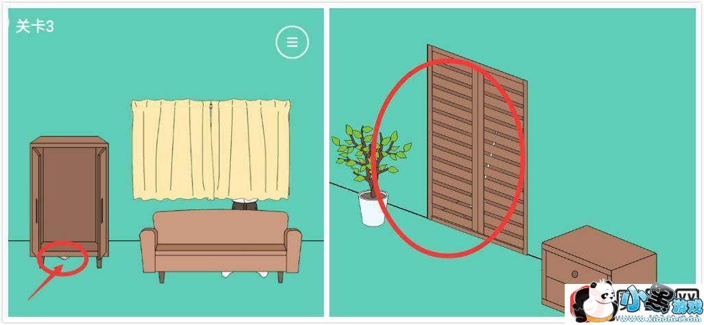 2、关卡2:手机在柜子上,但是够不到,需要一把凳子,凳子在衣橱门后面,将凳子拿过来踩到凳子上即可拿到手机。