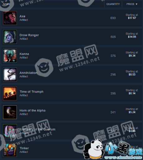 游戏中有8张单价超过21块的卡牌。它们中有4张英雄卡(斧王、卓尔游侠、卡娜、修补匠),另外4张是在主流卡组中的关键卡牌(灭绝、胜利时刻、领袖号角、评议团密使)。