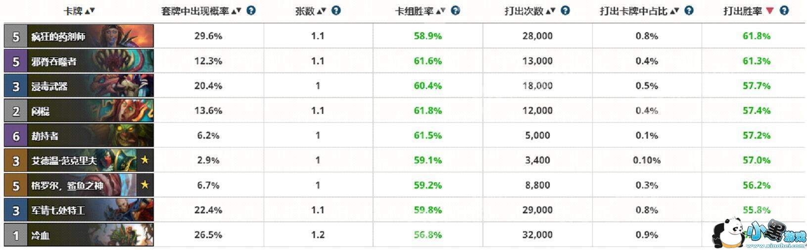 从职业单卡胜率,可以看出盗贼前十胜率卡中根本没有新卡,难道盗贼新卡就如此弱?