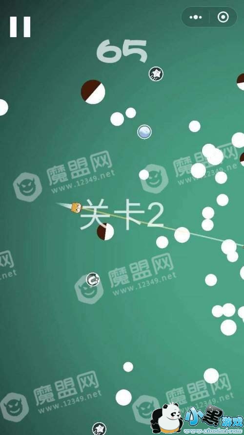 碰到白色球可以继续弹跳,一旦碰到黑色部分则游戏停止。