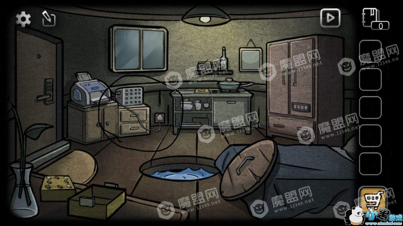 点击地板中间的水池拉上一只水桶,水桶里有提示如何操作上面水池里的笼头。(说实话这个我真的没看懂)