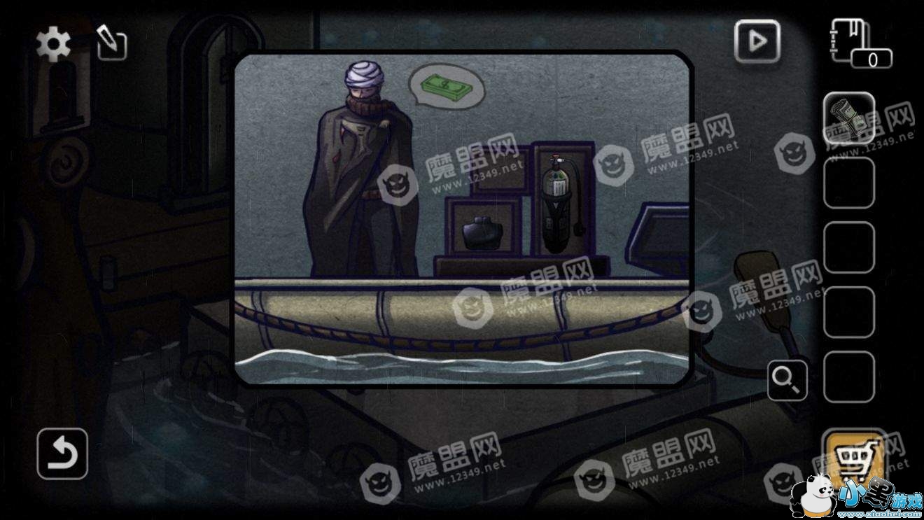 点击旁边的救生筏,把钞票交给商人,获得潜水设备。