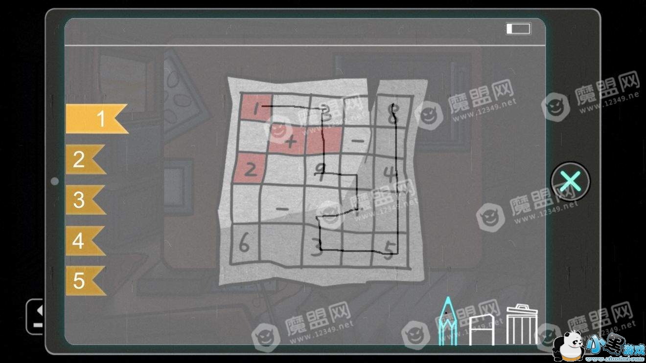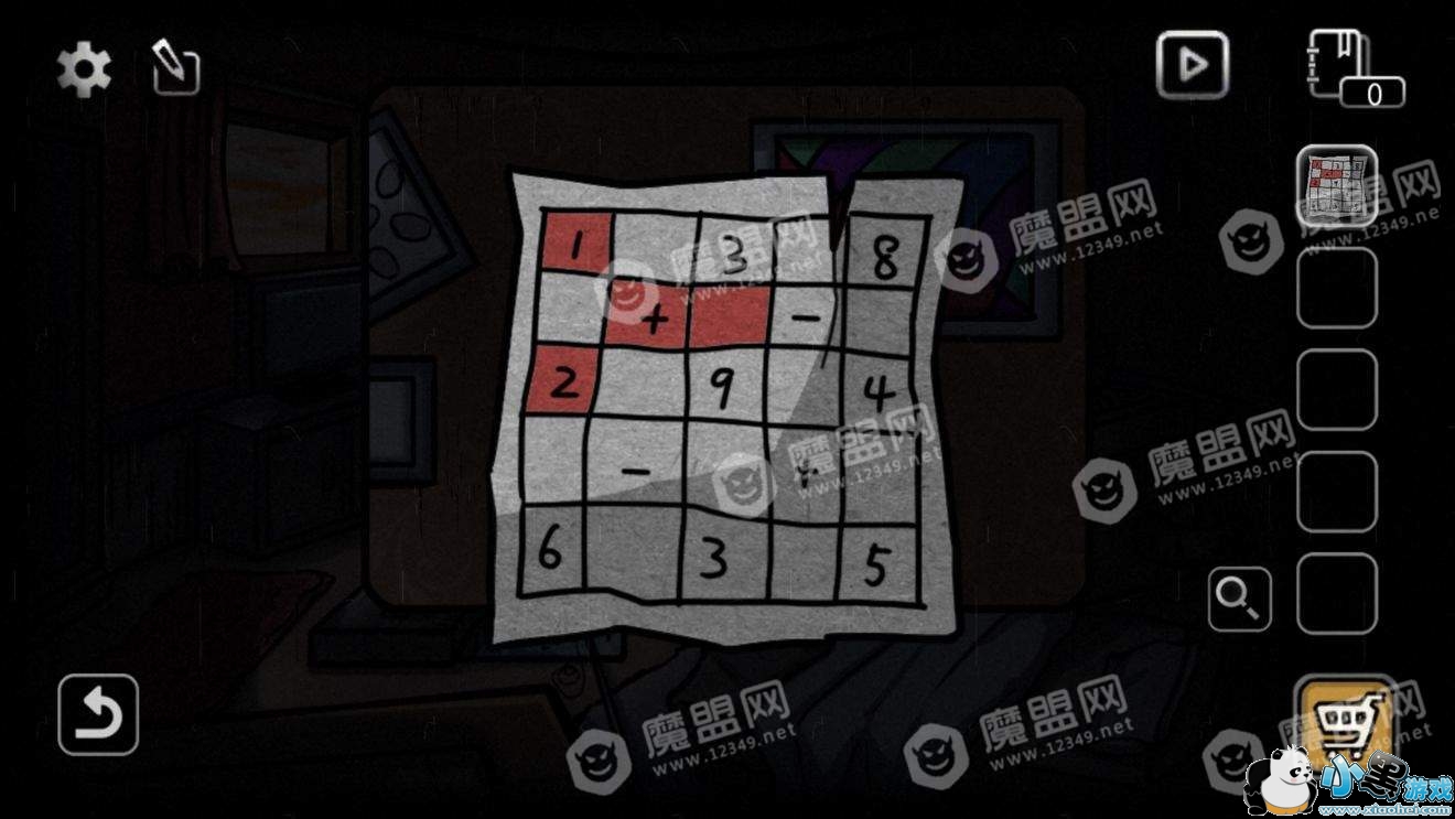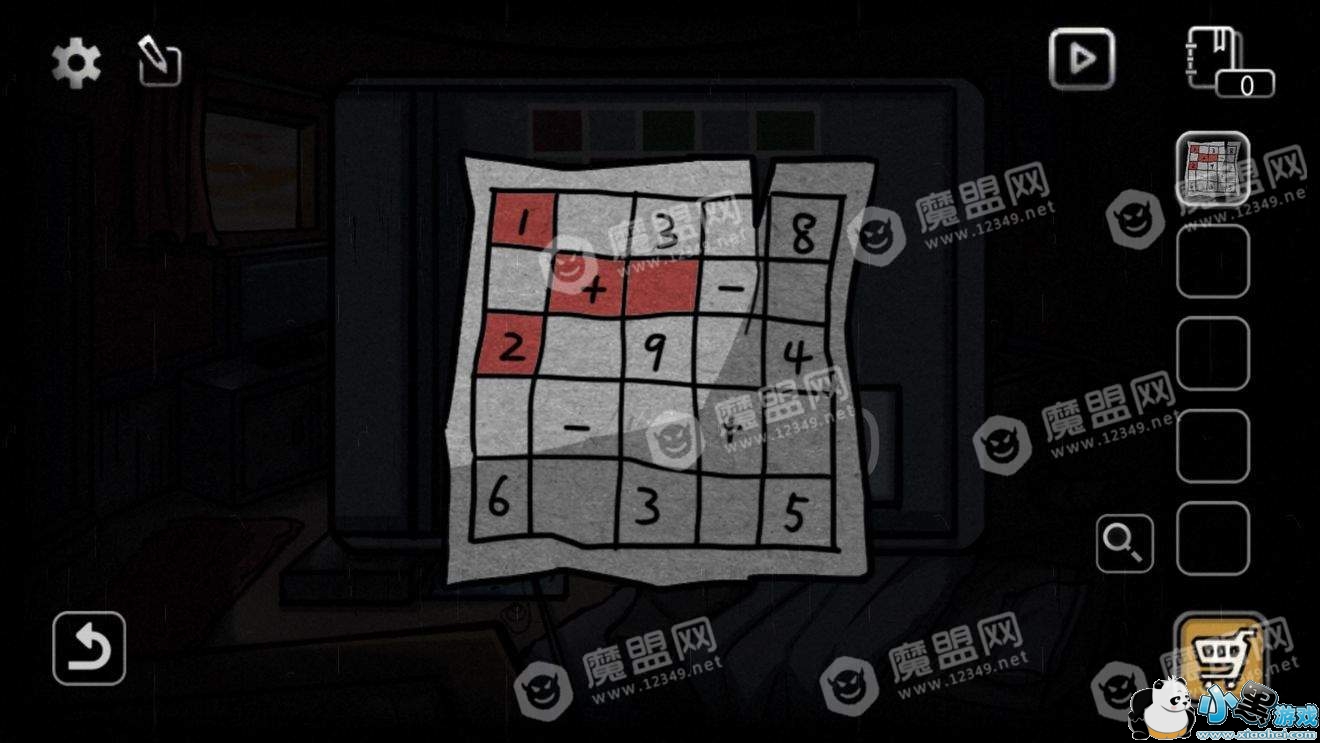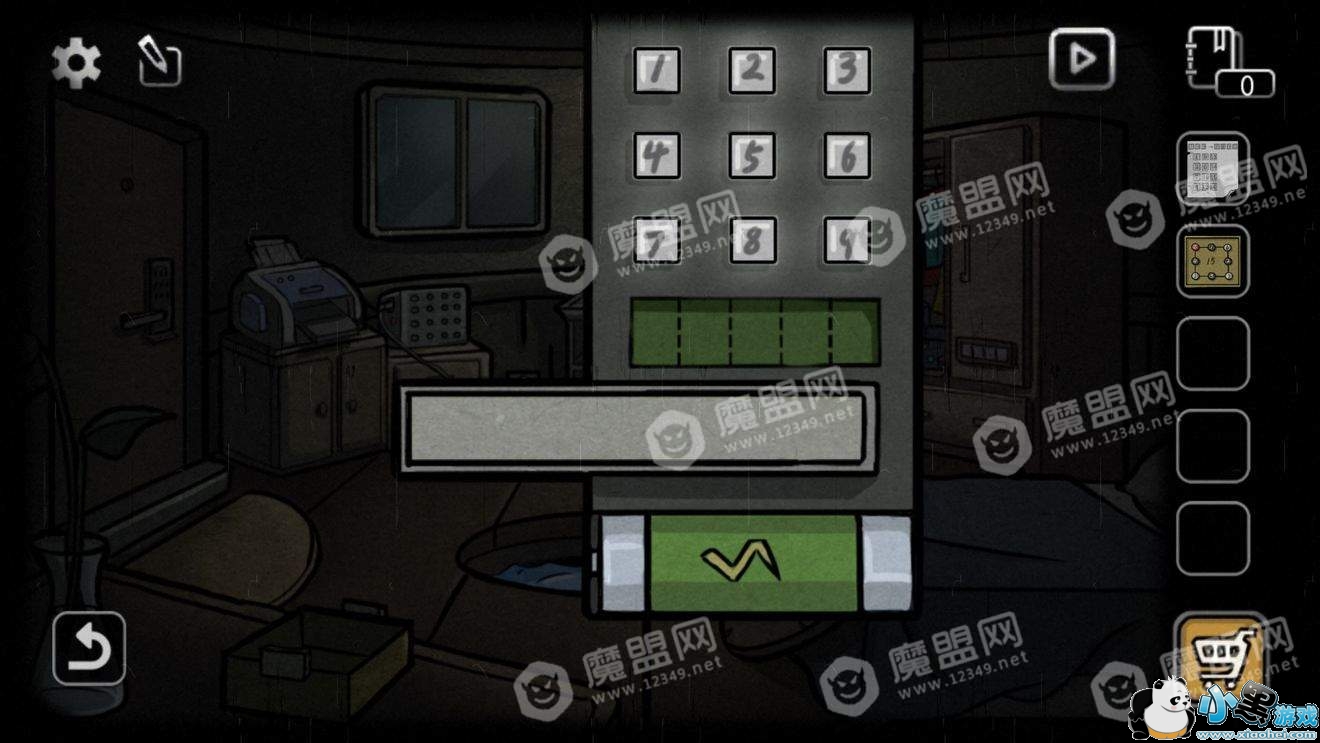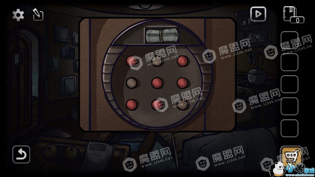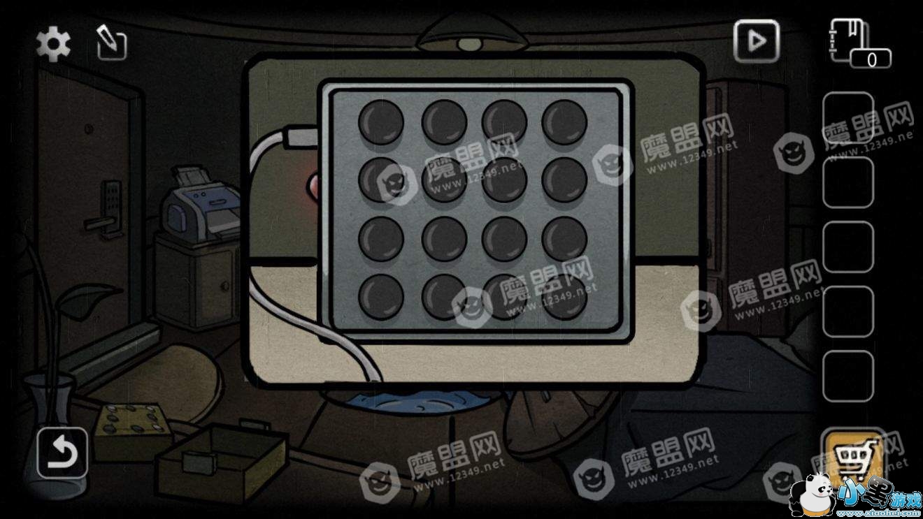 得到布和一个盒子,盒子的按钮全部点亮以后获得一张数字表和一把钥匙。(如果没有碰过盒子上按钮的话,依次点击1、2、4按钮即可全部点亮)