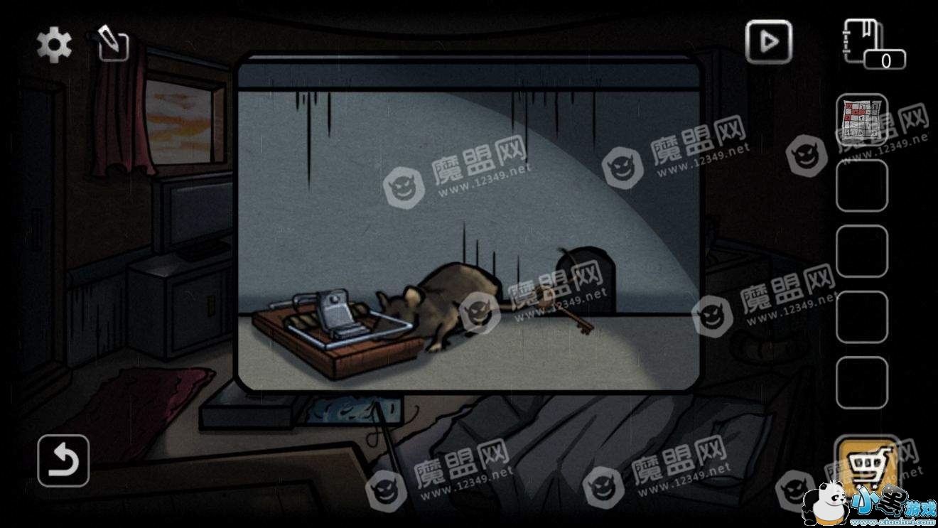 将捕鼠陷阱放在红叉位置,从老鼠尾巴上获得钥匙,用钥匙开门,过关。