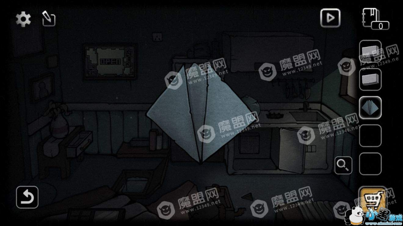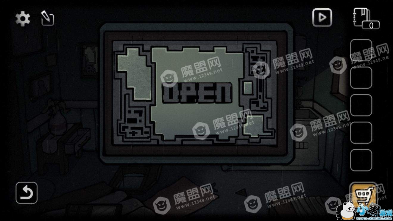点击左上角的画,把板子放上去得到单词open。