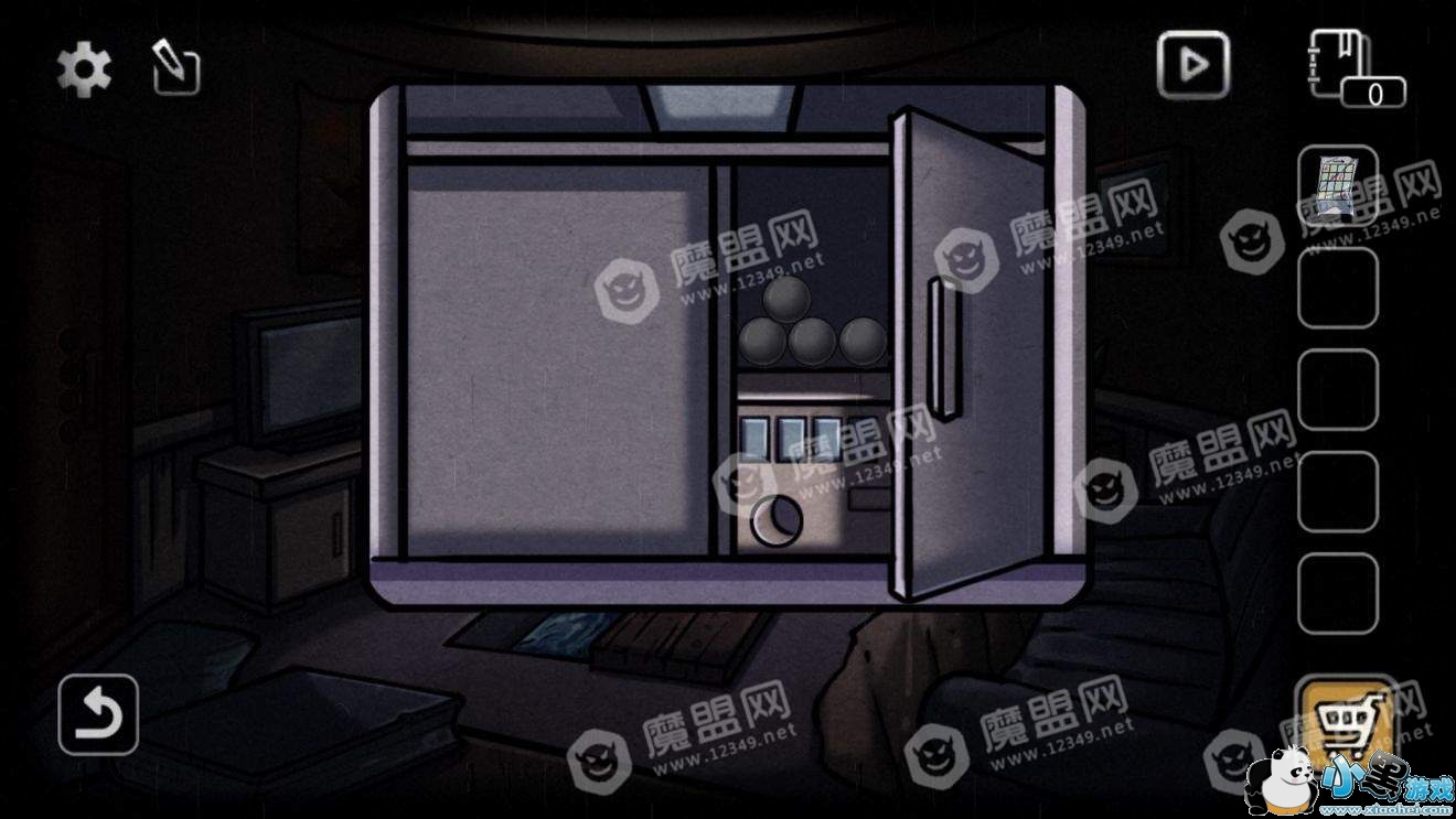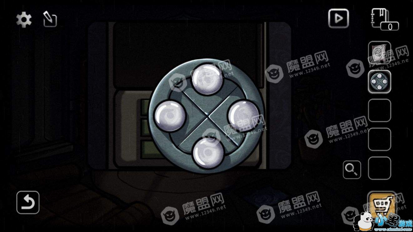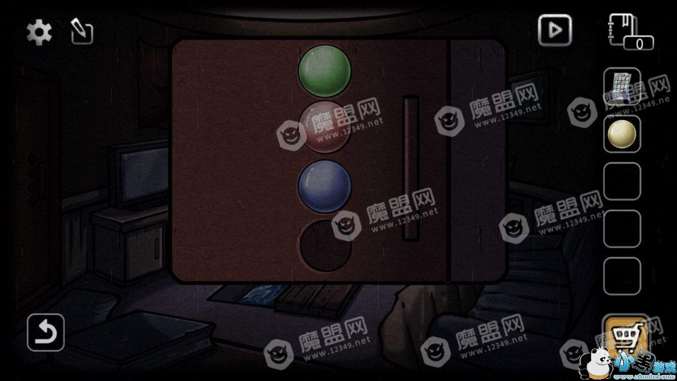 点击花瓶下面的柜子,用钥匙打开。获得四个白球和一台奇怪的机器。